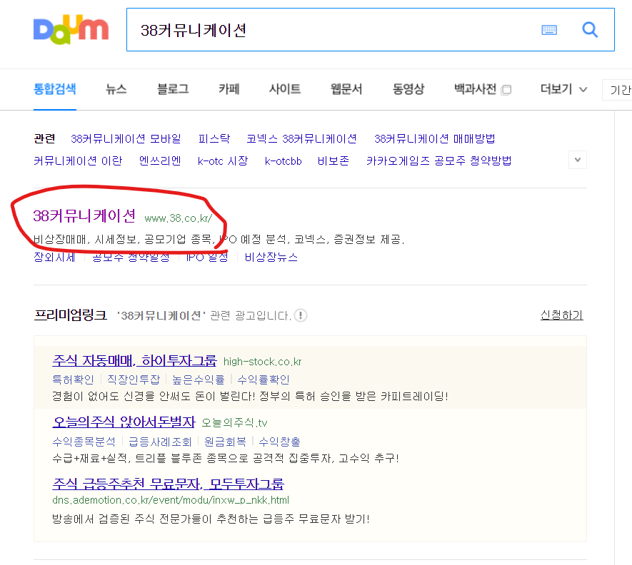 1. 다음 사이트에서 '38커뮤니케이션'을 검색해서 접속합니다.
