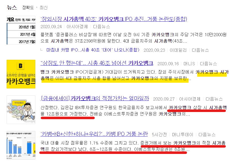 카카오뱅크가 상장할 경우, 엄청난 파장이 예상되는데요. 카카오가 대한민국을 점령할 날이 머지 않은 것 같은 느낌입니다. 결국에는 사업이 많이 겹치는 네이버와의 한판 승부에서 결정이 날 것 같은데요.