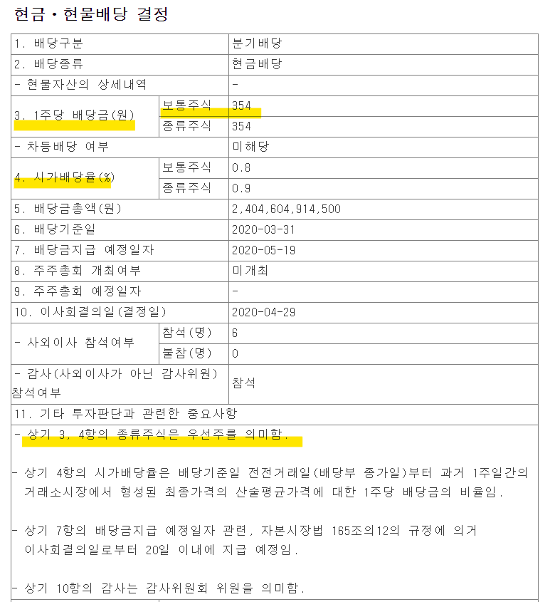 아니 의결권이 없는 주식을 왜사지? 하실 수 있는데, 의결권이 없는 대신에 우선적으로 높은 배당을 주는 프리미엄이 있는 주식이라고 보면 됩니다.