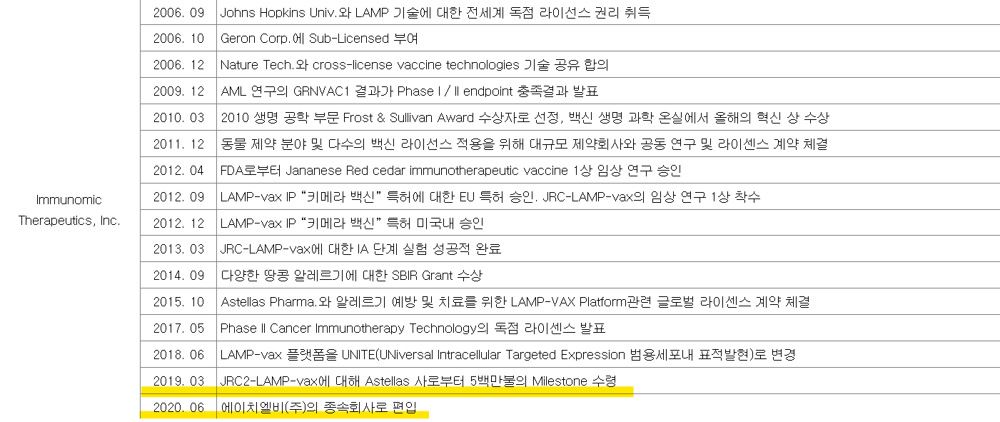 기존 라보세닙의 항암 신약 외에 각종 종양 및 알레르기에 대한 면역치료제 사업에 진출할 계획을 갖고 있습니다. 또한 아필리아에서 2020년 하반기부터 유럽 매출이 발생할 것이라고 예상하고 있습니다.