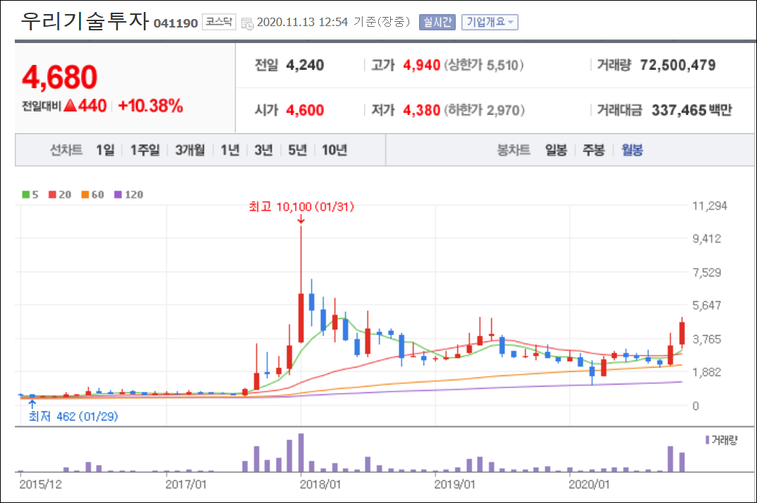 최근 우리기술투자 주가가 무섭게 상승하고 있습니다. 엄청난 변동폭을 보이면서 또한 엄청난 상승세를 보이고 있는데요. 우리기술투자가 어디까지 올라갈지 한번 예상해 보는 시간을 가져보겠습니다.