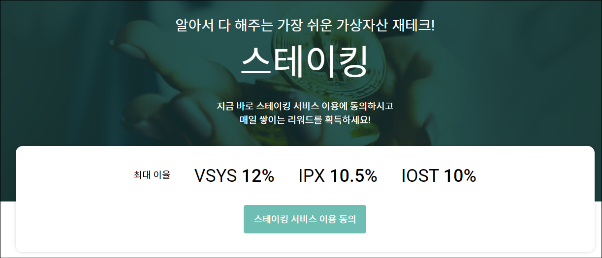스테이 킹, 자동매매, 가상자산 예치 등 부가적인 서비스를 이용해서 추가적인 수익을 추구할 수 있습니다. 특히 가상자산 예치는 내가 가지고 있는 코인을 빌려주고 이자를 받는 개념이라, 매매를 하지 않는 홀더분들은 해보시면 아주 좋은 수단임을 알 수 있습니다.