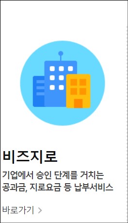 비즈지로 : 기업에서 승인 단계를 거치는 공과금, 지로요금 등을 납부할 수 있습니다.