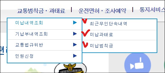 교통범칙금, 과태료 메뉴 조회하기