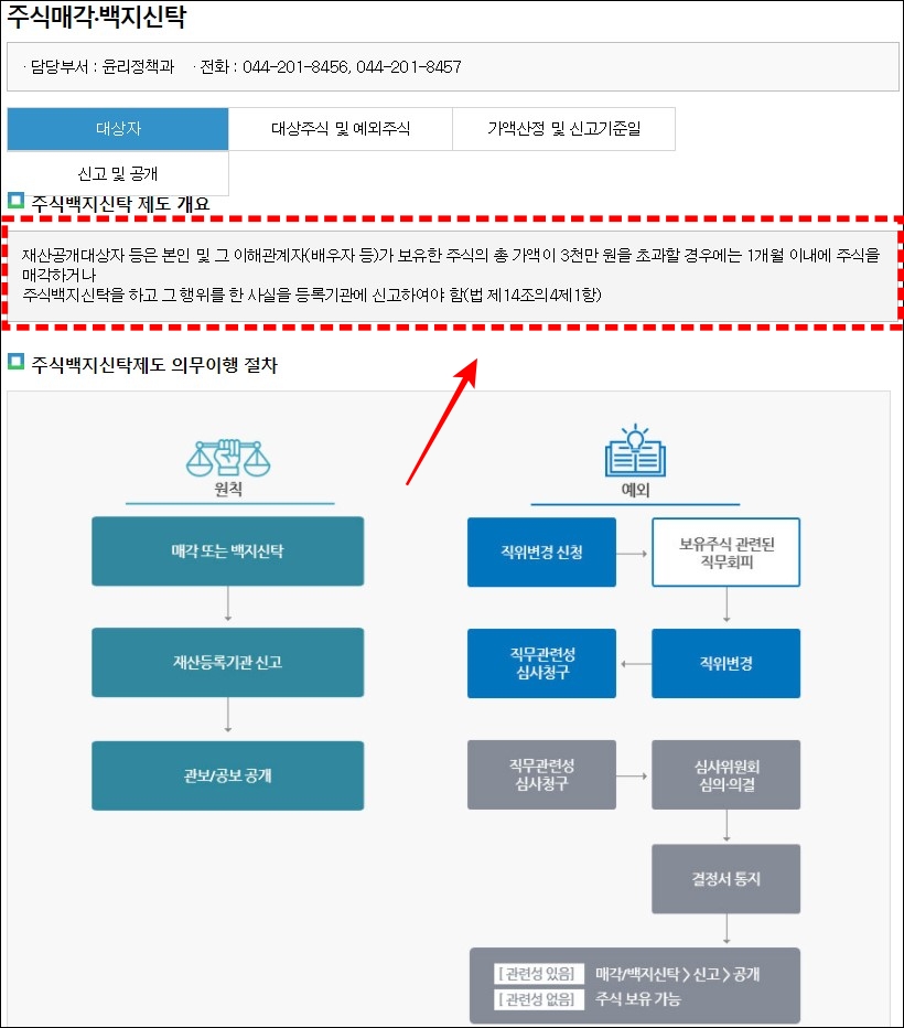 혹시라도 대상자 여부와 재산등록, 주식매각 * 백지신탁 관련 등 문의사항이나 절차 안내가 필요하신 분들은 152204273번으로 전화하셔서 자세히 상담을 받아보시면 좋습니다.