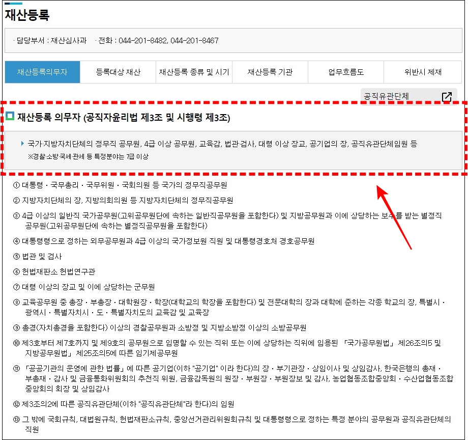 3천만 원의 주식 가액이 넘어갈 경우 조치를 취해야 한다는 사실인데요. 대상자는 재산공개대상자 및 기획재정부의 금융 사무 관장 국 소속 4급 이상 공무원 및 금융위원회 소속 4급 이상 공무원임을 확인할 수 있습니다.