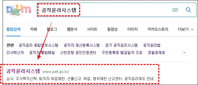 다음에서 "공직윤리시스템"을 검색하시면 하단에 사이트가 나오는데요. 이 사이트를 클릭해주시면, 공직윤리시스템 홈페이지로 접속이 가능합니다.