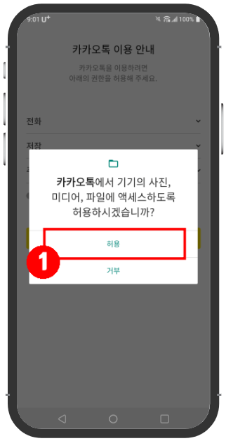 Q. 카카오톡에서 기기의 사진, 미디어, 파일에 액세스 하도록 허용하시겠습니까?