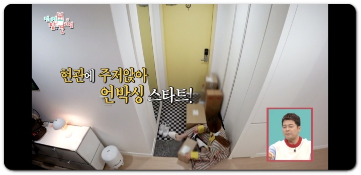 이러한 유행템, 트렌드 아이템들을 모으기 위해 택배가 엄청나게 오는데요. 택배를 받으면 이렇게 현관으로 나와서 택배작업을 하고 있습니다.