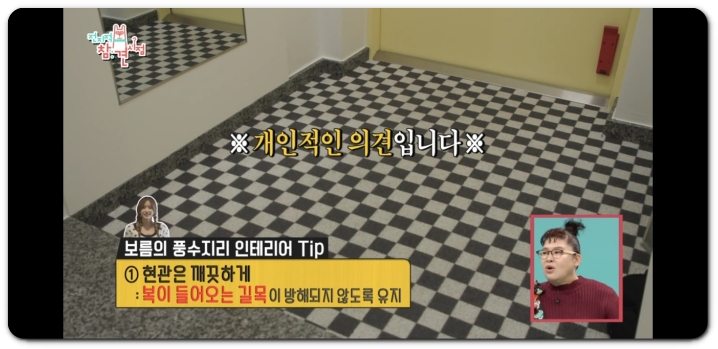 전참시에서도 풍수지리 책을 확인하면서 꽃병의 위치를 집안 가운데 두는 인상적인 모습을 볼 수 있었습니다. 풍수지리 덕분에 전지적 참견 시점까지 출연해서 유명해진 게 아닐까요?