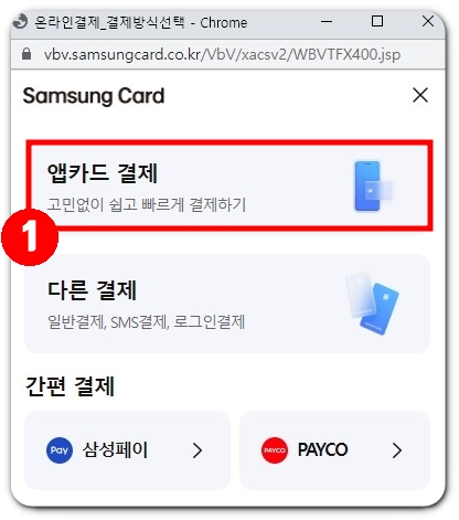 삼성카드 앱카드 결제를 통해 결제를 진행해 보겠습니다.
