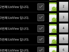 Android/Listview (7) 썸네일형 리스트형 안드로이드/Android ListView 클릭시 색상(배경) 변경 하기 ~! 안드로이드/Android ListView 클릭시 색상(배경) 변경 하기 ~! 안드로이드 ListView 클릭시 색상(배경)을 변경하는 방법 입니다. ListView가 기본 제공해 주는 Selector 말고 사용자가 지정하는 색상 및 Selector를 사용 할 수 있습니다. 1.xml파일에서 변경하는 법 - listview의 옵션에 android:listSelector="#00000000" 2.소스에서 변경하는 법 - m_listView.setSelector( new PaintDrawable( 0xffff0000 ) ) ; * 그림 파일로 변경할 수도 있음*주의 할 점은 리스트 아이템의 배경이 그림파일이면 복잡해진다는거..우히히 3.예전에 쓰던 방법인데 리스트뷰와 똑같이 생기고 색이 다른 그림파일을 준비한.. 안드로이드/Android ExpandableListView 만들기 - 2 - (속성 추가) 개발 환경 > ● 작성일 : 2013.02.25 ● OS 설치 버전 : Windows7 32bit ● SDK 설치 버전 : 안드로이드 SDK 4.2 (젤리빈) / API LEVEL : 17 ● ADT 설치 버전 : 21 ● Java 설치 버전 : JDK 1.6.0_20 / JRE6 ● 이클립스 설치 버전 : Indigo ● 테스트단말 : 삼성 갤럭시 S2 4.0.4 (아이스크램 샌드위치) ● Android Build Target / API LEVEL / Complie With : 17 ● minSdkVersion : 8 ● targetSdkVersion : 16 ● Java Compiler Level : 1.6 ● Text file encodi.. 안드로이드/Android ListView Header, Footer 설정 하기 ~! 개발 환경 > ● 작성일 : 2013.01.10 ● OS 설치 버전 : Windows7 32bit ● SDK 설치 버전 : 안드로이드 SDK 4.2 (젤리빈) / API LEVEL : 17 ● ADT 설치 버전 : 21 ● Java 설치 버전 : JDK 1.6.0_20 / JRE6 ● 이클립스 설치 버전 : Indigo ● 테스트단말 : 삼성 갤럭시 S2 4.0.4 (아이스크램 샌드위치) ● API LEVEL : 8 ● minSdkVersion : 8 ● targetSdkVersion : 8 ● Java Compiler Level : 1.6 ● Text file encoding : UTF-8안드로이드/Android ListView Header,.. 안드로이드/Android AdapterView.onItemClickListener 사용법 개발 환경 > ● SDK 버전 : 안드로이드 SDK 2.1 ● API LEVEL : 7 ● 이클립스 버젼 : Indigo ● 테스트단말 : 삼성갤럭시 S2안드로이드/Android AdapterView.onItemClickListener 사용법ListView를 사용하여 작업을 하게 되는 경우, 각각의 Row(행)에 이벤트를 걸어야 할 경우가 생기는 데요. 이럴때 보통 AdapterView.onItemClickListener 를 이용하여, 이벤트 처리를 해주게 됩니다. 하지만 보통 position 값만을 사용하여 코딩하게 되는 경우가 많은데요. 간단하게 onItemClickListener 대해서 알아보겠습니다.우선 onItemClickListener는 CallBack Listener 입니다. .. 안드로이드/Android ExpandableListView 만들기 안드로이드/Android ExpandableListView 만들기 안드로이드에서 ListView는 많이들 써보셨을 텐데요. ListView안에 또다른 List가 들어있는 ExpandableListView라는 녀석이 존재 합니다. 기본적으로 ListView를 상속받아 구현한 클래스기 때문에 ListView의 속성과 거의 유사하다고 생각 하시면 됩니다. 생각하실것은 기존의 ListView는 getView하나로 Row를 만들고 사용하였는데 ExpandableListView는 Group 과 Child 의 getView를 각각 구현해 준다는 점만 기억하시면 만드시는데는 큰 문제가 없을 거라고 생각합니다. 자 그럼, ExpandableListView 의 예제를 살펴 보겠습니다. public class TestExp.. 안드로이드/Android ArrayAdapter, BaseAdapter를 이용한 ListView 구현 안드로이드/Android ArrayAdapter, BaseAdapter를 이용한 ListView 구현 안드로이드 프로젝트를 진행하면서 ListView 를 이용한 화면 구성을 많이 하겠 됩니다. ListView란 Data를 List 형식으로 출력해주는 View 인데요. ArrayAdapter 와 BaseAdapter를 이용한 ListView 구현 방법에 대하여 알아 보겠습니다. Adapter란 ListView에 출력할 Data를 보관하는 장소라고 생각 하시면 되는데요. 실질적으로 List형식의 Data를 Adapter에 넘겨주면 Adapter가 ListView의 Row마다 List형식의 데이터를 출력 할 수 있게 도와 줍니다. TesLlistViewActivity.java public class TestL.. 안드로이드/Android Custom ListView CheckBox 모두 선택 하기 드로이드/Android Custom ListView CheckBox 모두 선택 하기 package arabiannight.tistory.com; import java.util.ArrayList; import android.app.Activity; import android.content.Context; import android.os.Bundle; import android.util.Log; import android.view.LayoutInflater; import android.view.View; import android.view.View.OnClickListener; import android.view.ViewGroup; import android.widget.AdapterView; import .. 이전 1 다음