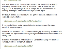 Android/NetWork (21) 썸네일형 리스트형 안드로이드/Android getResponseCode() 에러 날 경우 에러 메시지 보는방법 안드로이드/Android getResponseCode() 에러 날 경우 에러 메시지 보는방법 if(responseCode == HttpURLConnection.HTTP_OK) { } else { InputStream is = conn.getErrorStream(); ByteArrayOutputStream baos = new ByteArrayOutputStream(); byte[] byteBuffer = new byte[1024]; byte[] byteData = null; int nLength = 0; while((nLength = is.read(byteBuffer, 0, byteBuffer.length)) != -1) { baos.write(byteBuffer, 0, nLength); } byteDat.. 안드로이드/Android 서버 연동시 request body 셋팅 하기! 안드로이드/Android 서버 연동시 request body 셋팅 하기! 서버 연동시 request body 값 셋팅 방법 입니다. URLConnection connection = new URL(url).openConnection(); connection.setDoOutput(true); // Triggers POST. connection.setRequestProperty("Accept-Charset", charset); connection.setRequestProperty ("Content-Type", "application/x-www-form-urlencoded;charset=" + charset); try { OutputStreamWriter wr = new OutputStreamWriter(con.. 안드로이드/Android C2DM 관련 궁금증~! 개발 환경 > ● SDK 버전 : 안드로이드 SDK 2.2 ● API LEVEL : 8 ● 이클립스 버젼 : Indigo ● 테스트단말 : 삼성갤럭시 S2안드로이드/Android C2DM 관련 궁금증~!C2DM 을 사용하면 여러가지 의문점이 드는 경우가 생깁니다.. 예를 들면, 음 구글 계정이 꼭 필요한가? 마켓에 연동이 되있어야 되는가? 등 여러가지 궁금증이 있을 수 있는데요.!! 이번 시간에는 그러한 궁금증을 해결해 보는 시간을 가져 보도록 하겠습니다.~!!자 추울발~~~~!!! 1. C2DM 서비스는 어떤 버전 부터 지원 하나요?C2DM 서비스는 안드로이드 2.2 API 8 부터 지원하기 때문에, 이전 버전에서는 사용 하실 수 없습니다. 꼭 주의하세요.~!! 2. 그럼 2.2 .. 안드로이드/Android C2DM 사용해 보자! ( 예제 포함 ) 개발 환경 > ● SDK 버전 : 안드로이드 SDK 2.2 ● API LEVEL : 8 ● 이클립스 버젼 : Indigo ● 테스트단말 : 삼성갤럭시 S2안드로이드/Android C2DM 사용해 보자! ( 예제 포함 )안녕하세요. [안드로이드/Android C2DM 이란?] 이란 포스팅 이후로 오래간만에 인사드립니다. 오늘은 실제 C2DM을 사용하는 방법에 대해서 알아 볼텐데요.!! 이전에 C2DM 구조에 대해 이해하신 분이라면, 바로 사용 하실 수 있고, 안보신 분들은 C2DM 사용법이 녹녹치 않을 텐데요.!! 이론을 먼저 보시고 예제를 따라 하시는 걸 추천해 드립니다.^^자 아래는 저번에 설명했던 C2DM 흐름 입니다. 음 참..볼때 마다 새롭죠?ㅎㅎ기본적인 흐름은 이렇습니다. 여기서는.. 안드로이드/Android C2DM 이란? 개발 환경 > ● SDK 버전 : 안드로이드 SDK 2.2 ● API LEVEL : 8 ● 이클립스 버젼 : Indigo ● 테스트단말 : 삼성갤럭시 S2안드로이드/Android C2DM 이란?안녕하세요.!! 오늘은 날씨 너무 덥네요. 앉아만 있어도 후덥지근한... 후... 오늘 서울이 28도 까지 올라간 초여름 날씨 였다고 하는데요.!! 자 다들 그래도 열심히 해서 실력을 업그레이드 해보자구요!! 아자!!자 오늘 알아볼 내용은 C2DM 사용 방법 입니다. 음 C2DM이 모지?? 라고 생각하시거나.. 한두번 들어보신 분들도 많으실텐데요. C2DM이란 (Cloud to device message) 의 줄임말 입니다. 먼저 생각해 보실게 Cloud 라는 단어 인데요.! 다들 아시다시피 "구름".. 이전 1 2 3 다음
